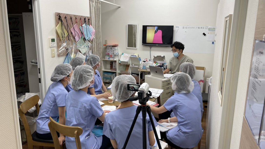 本日は、歯科衛生士の歯周病に関する知識の標準化を目的として〜第3回Dr.Tのペリオマニアへの道〜と称するかいり歯科クリニック内でクローズドのDH勉強会を開催しました。