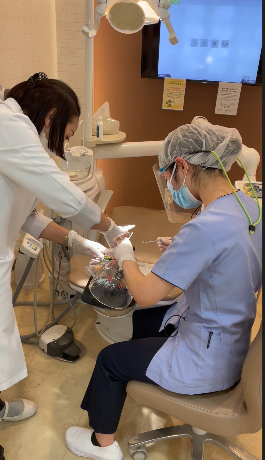 午前からお昼にかけて、まずは4月から当院に加わる新卒DHの教育体制を整えるにあたり、DHと個別面談をして頂き、