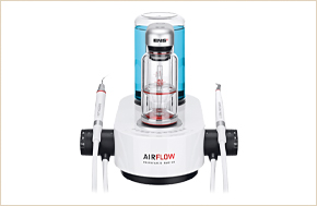 エアフロー技術を用い、細かい粒子のパウダーを空気圧で吹きつけて、虫歯や歯周病の原因であるバイオフィルムやステイン(歯の着色)を綺麗に隅々まで落とすことができます。